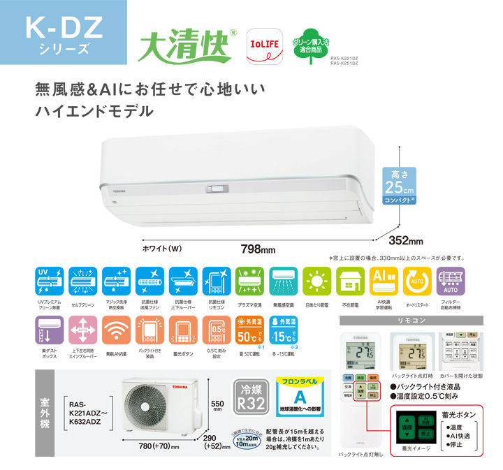RAS-K251DZ-W 東芝 ルームエアコンのカタログ情報